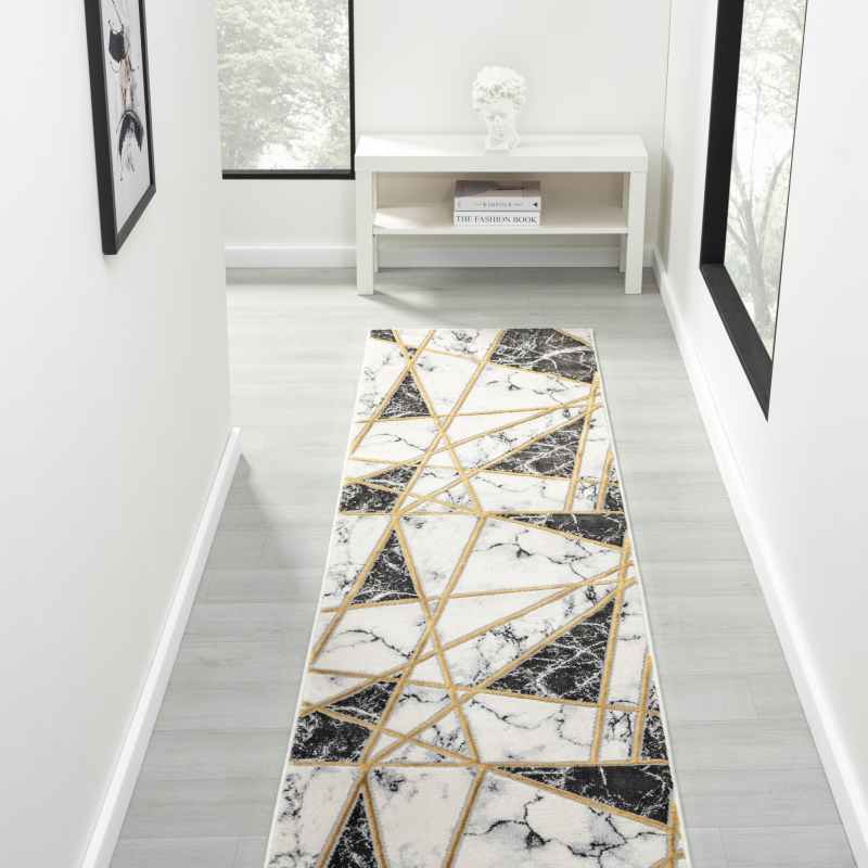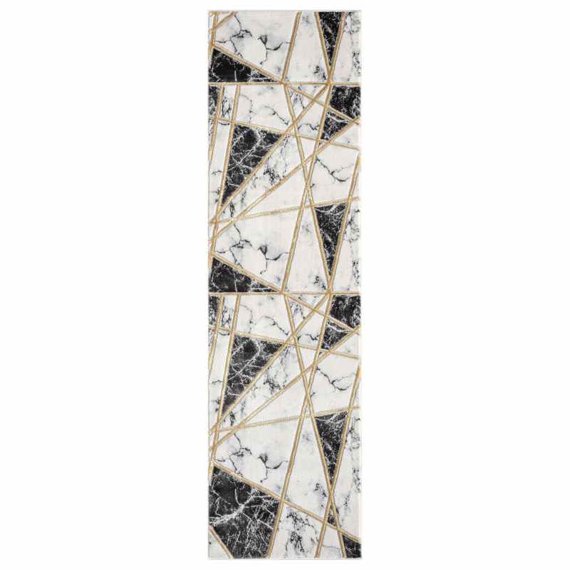 Bianco 185MA Marble Geometric Runner Rug in Black Cream