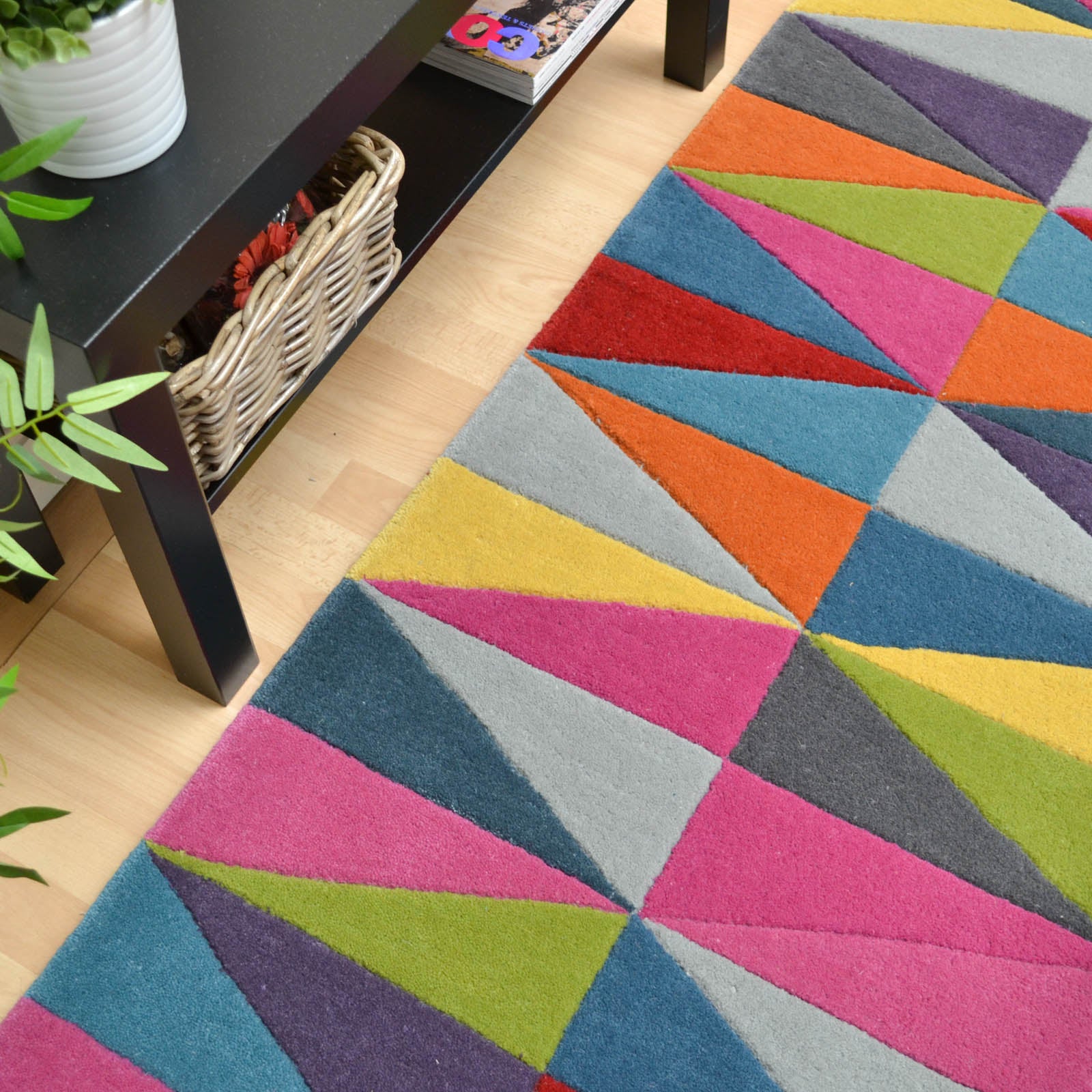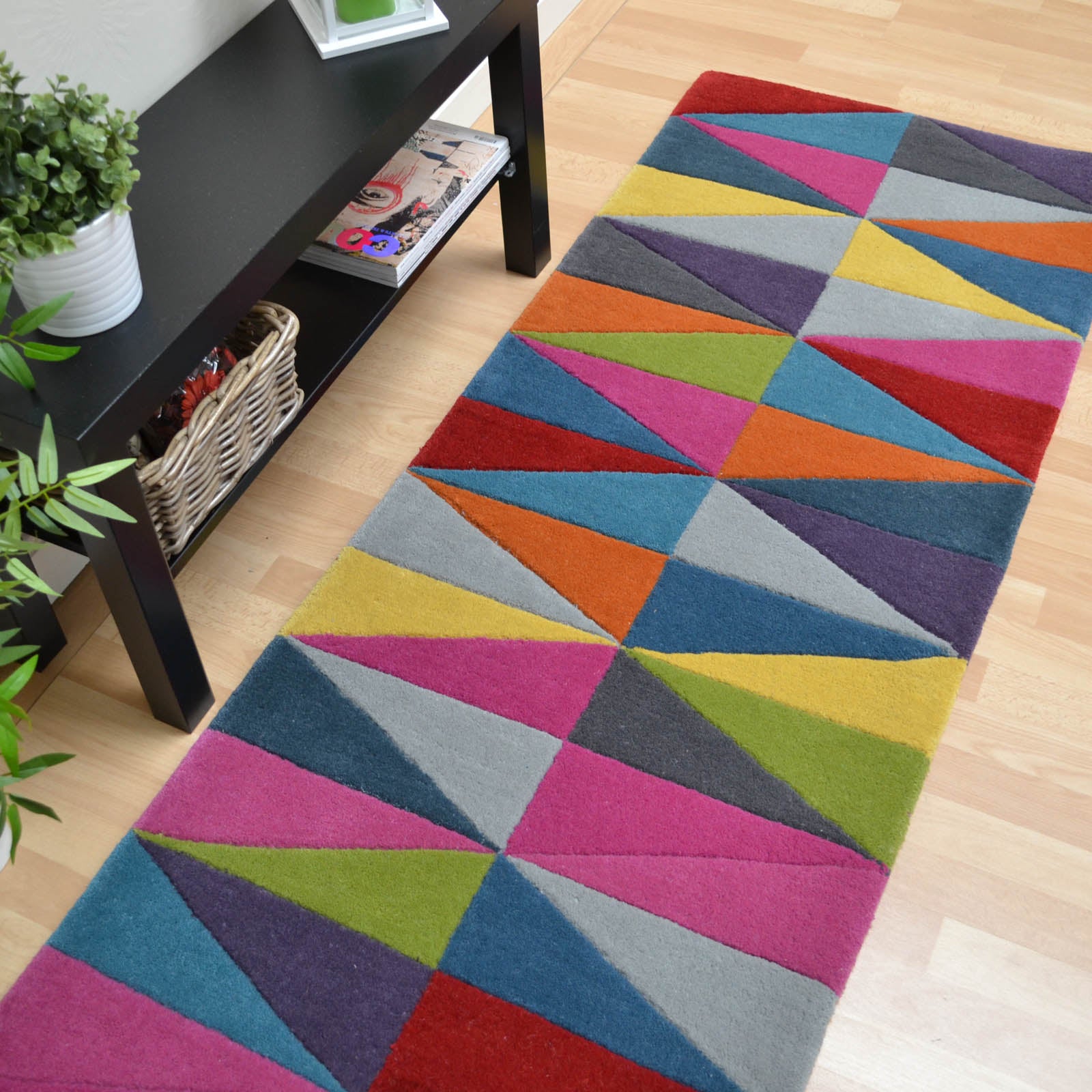Funk Triangles Hallway Runners are one of the finest collections of wool rugs with a vibrant multi coloured triangle design with up to 38 different colours. Handwoven in India with a 100% New Zealand Wool pile which is durable and soft to touch. The triangles are hand carved to create an additional dimension. Pile height of 12mm and weight of 3300g per square metre. For matching Rug click here