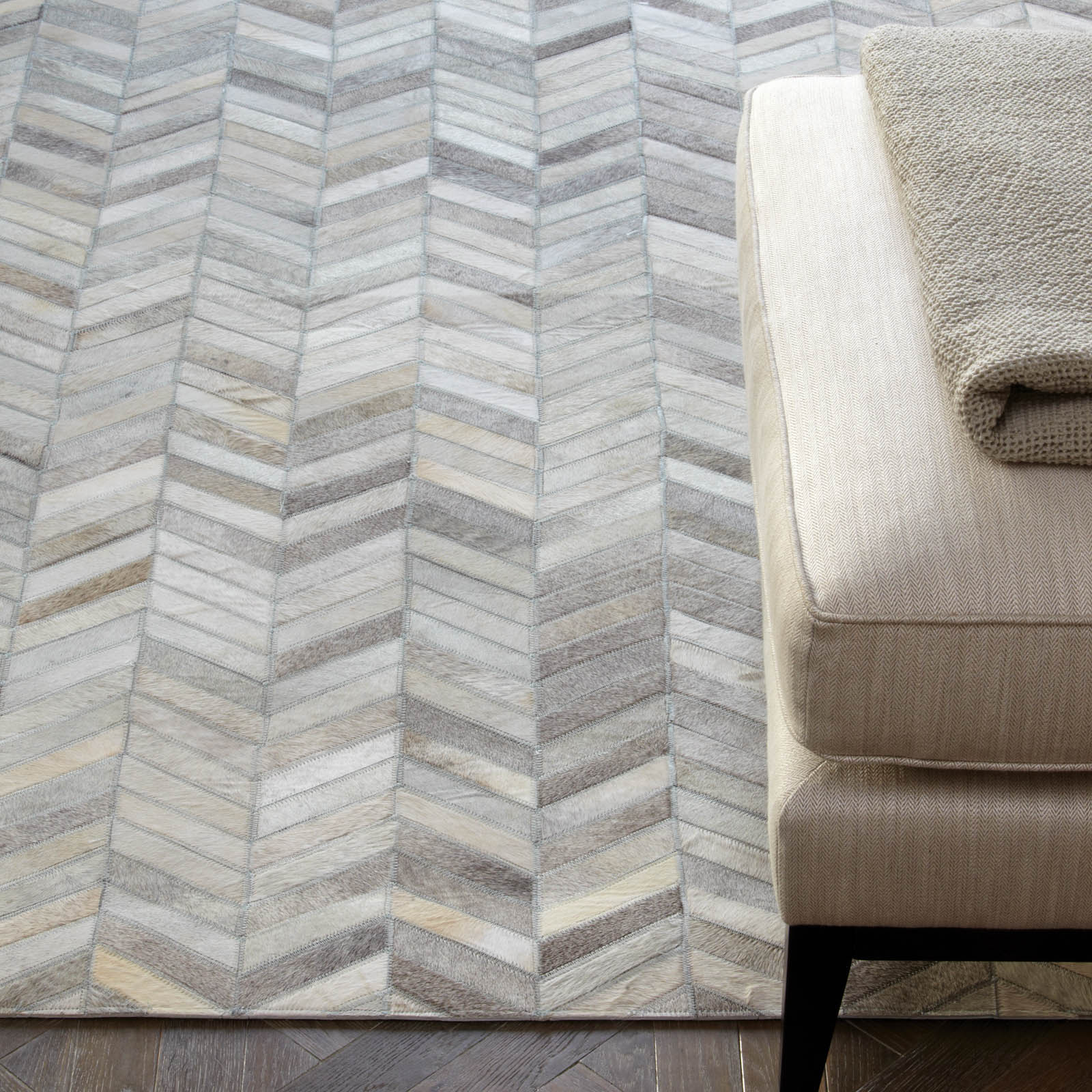 Gaucho Genuine Leather Patch Modern Chevron Rugs in Natural
