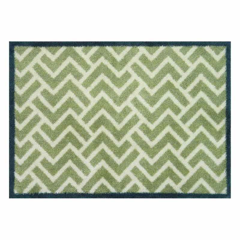 Herringbone Tiles Washable Doormats in Green