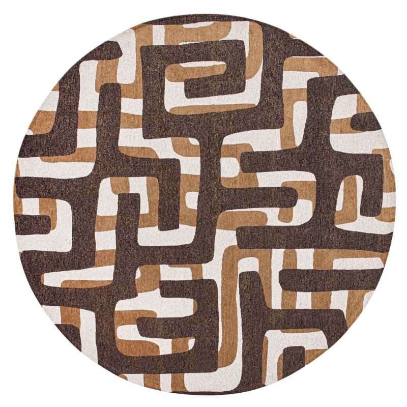 Louis De Poortere Designer Kuba Round Rugs in 9335 Bison Brown