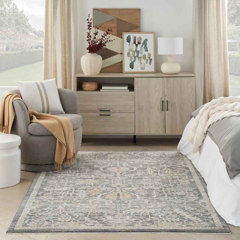 Add a traditional style to your living space with the Lynx LNX02 rug by Nourison. The artistic reimagining of timeless Persian-inspired and tribal patterns adds global energy to your interior. A classic Persian medallion centre is surrounded by intricate botanical motifs, framed by a matching border. Complemented by subtly raised accents, navy blue and multi tones, and purposeful distressing that lends a vintage feel. With short fringes at both ends and metallic serged edges, the Lynx rug is ideal for contemporary and boho décor. Machine-made from 87% Polyester, 13% Polypropylene with a cotton/latex backing, this beautiful rug is recommended for areas with moderate foot traffic, finished with a low shedding cut pile. Pile height: 8mm. Vacuum regularly (no beater bar), immediately spot clean with damp cloth, professional cleaning recommended. Available in a wide range of sizes from small to XXXL. Also available in a matching runner and a matching circle rug. For runner click here For circle rug click here