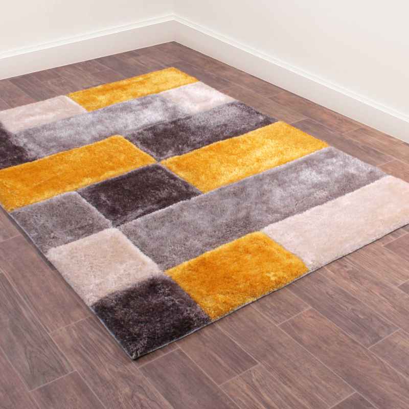 Create a modern look in your home with our new 3D Carved Rug Collection. The 3D Blocks in Ochre Yellow colour tones combines geometric patterns with carved textures to create a contemporary look. A perfect addition to your living room and bedroom areas, creating depth and warm with its soft pile. Made with 100% Polyester yarn which benefits from being super soft, easy to clean, anti shed and very hard-wearing. This rug has a pile height of 3.5cm. Available in small to large sizes.