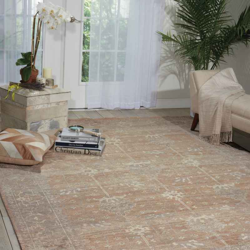 In alluring shades of pewter, a magnificent antique-inspired design brings a light-filled luminosity to any room where a traditional touch is required. With its eye-catching attention to detail, fabulous fringes, gorgeous hand knotting and opulent bamboo extruded silk-like pile, this breathtaking Aldora area rug from Nourison is destined to dazzle.