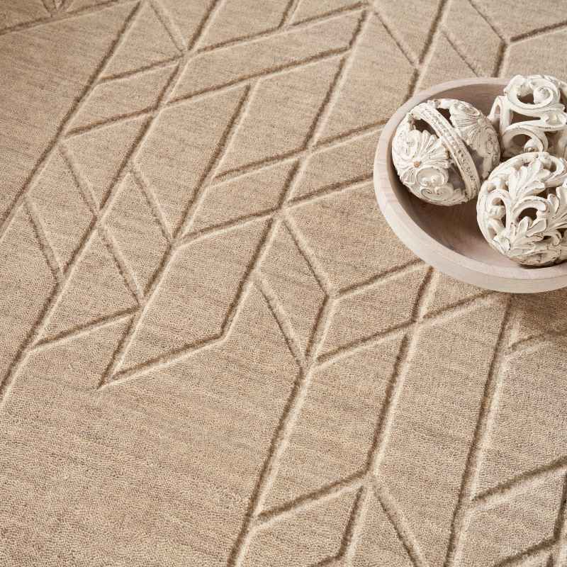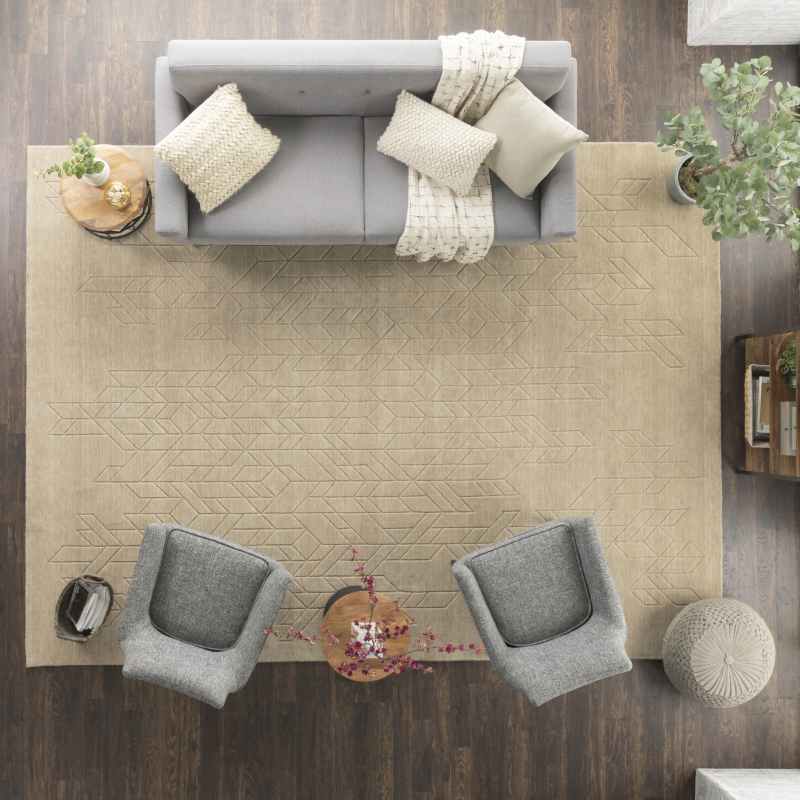 The Alessia ALE01 rug will add a cozy style to your home interior, effortlessly blending style and function. Featuring a hand carved geometric pattern that offers a subtle layer of depth, and a medium-thick pile that has a softly cushioned texture, presented in a beige colour palette. Handmade from 100% European wool, this rug in naturally stain resistant, water repellent, hypoallergenic and durable, meaning this rug is suitable for high traffic areas of the home. Place this rug in your living room, bedroom and office areas for a modern finish. No backing. Moderate shedding. Cut pile. All-natural vacuum regularly (no beater bar). Immediately spot clean with damp cloth. Professional cleaning recommended. Available in a large range of sizes.