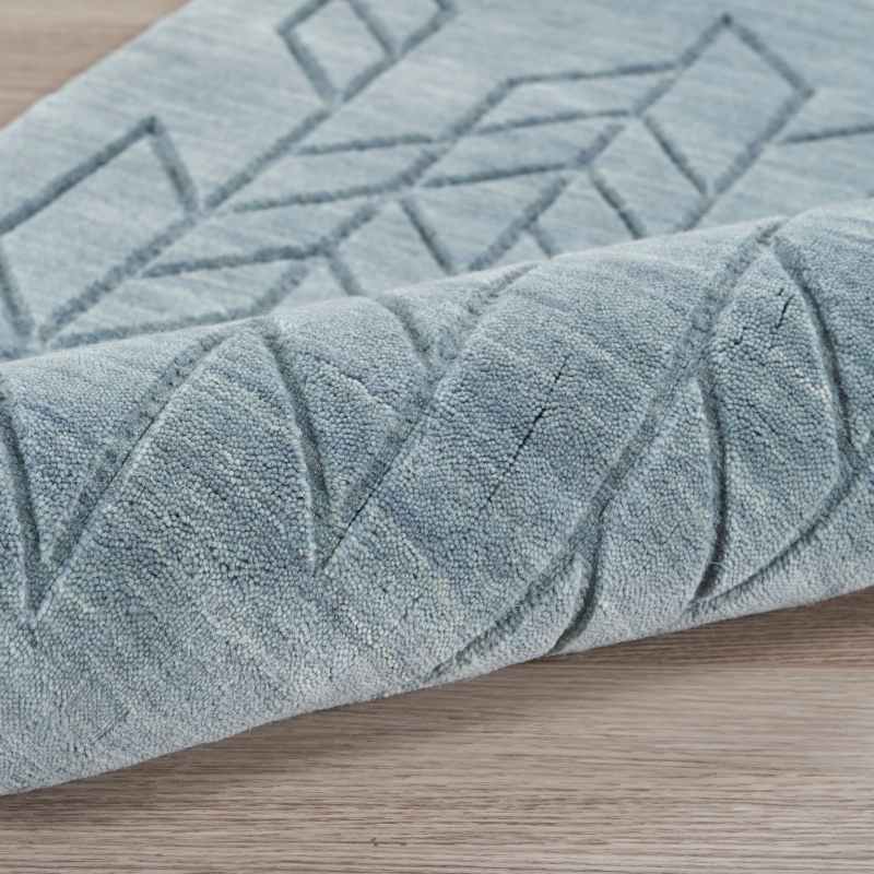 The Alessia ALE01 rug will add a cozy style to your home interior, effortlessly blending style and function. Featuring a hand carved geometric pattern that offers a subtle layer of depth, and a medium-thick pile that has a softly cushioned texture, presented in a blue colour palette. Handmade from 100% European wool, this rug in naturally stain resistant, water repellent, hypoallergenic and durable, meaning this rug is suitable for high traffic areas of the home. Place this rug in your living room, bedroom and office areas for a modern finish. No backing. Moderate shedding. Cut pile. All-natural vacuum regularly (no beater bar). Immediately spot clean with damp cloth. Professional cleaning recommended. Available in a large range of sizes.
