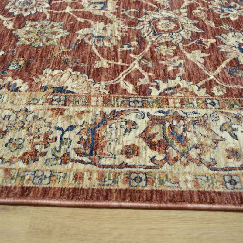 Alhambra rugs 6549A offers a beautiful traditional design with vintage appeal. The intricate floral deisign in wonderful red colour tones has a distressed appearance for the look of an old antique which will fit into any classic or contemporary interior. Power loomed with a super soft 100% polyester yarn which benefits from being hard wearing and easy to clean.
