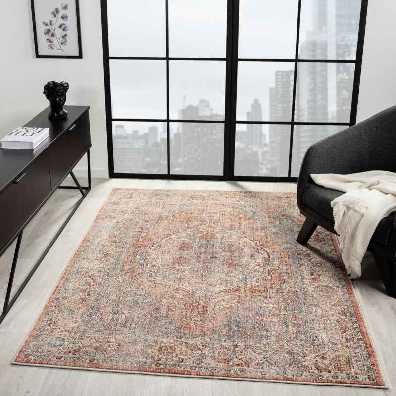 Elevate your living space with the Alia 524AR rug. Crafted with high quality materials, this neutral toned rug adds warmth and sophistication to any room. The Alia 524AR rug would make a striking focal point for living room and bedroom areas, for a traditional finish with a slightly modern touch. Create a cosy and elegant atmosphere with this must-have home accessory, featuring a border and medallion design, in shades of grey and rose pink. Beautifully crafted from space dyed polyester, this rug is resilient, durable and soft to touch, for a luxurious underfoot feel. Available in sizes small to extra large.