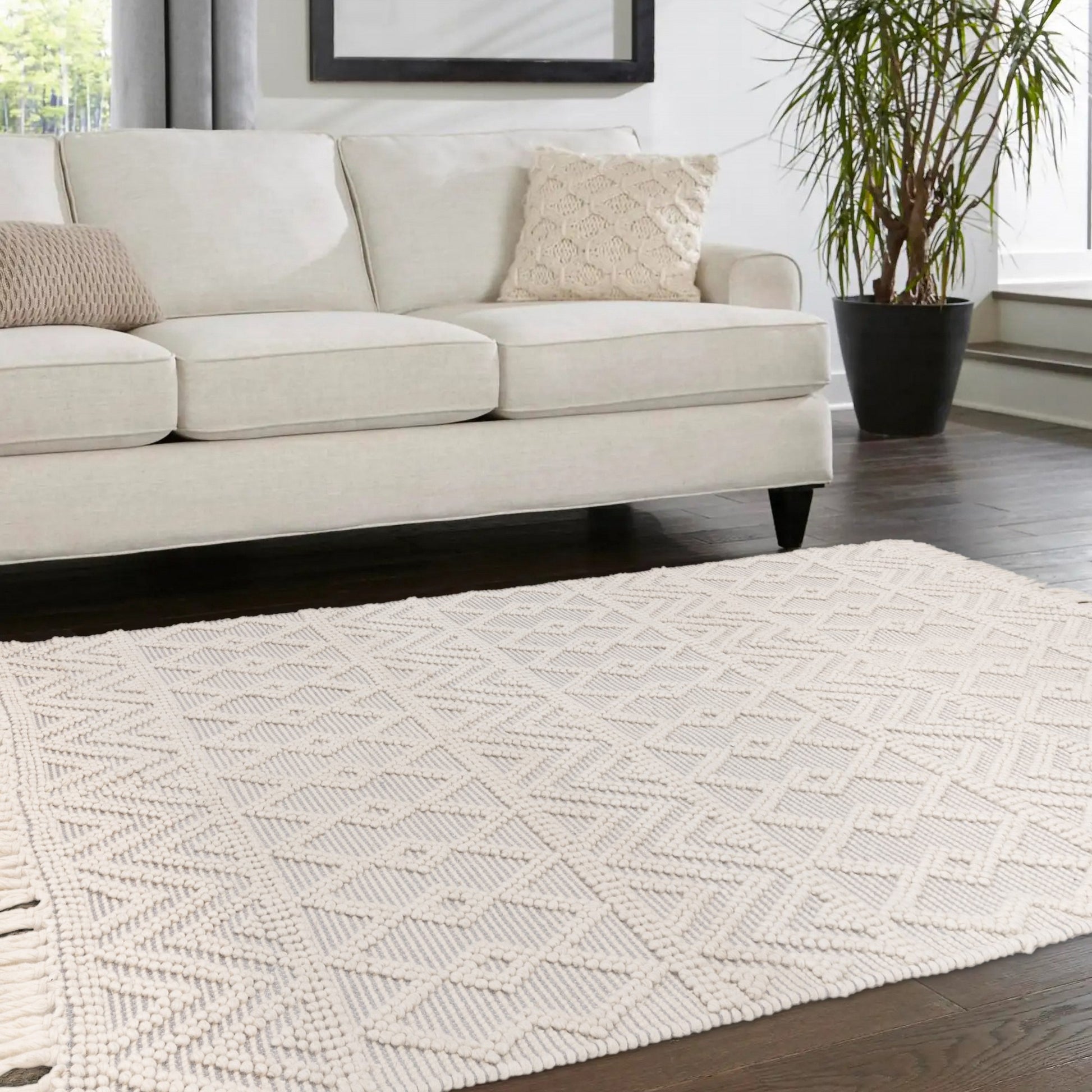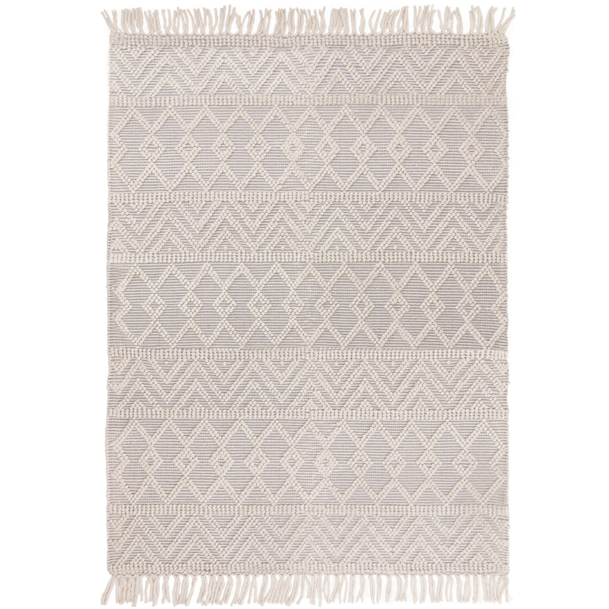 Asra Boho Tribal Fringed Wool Flatweave Rug in Grey