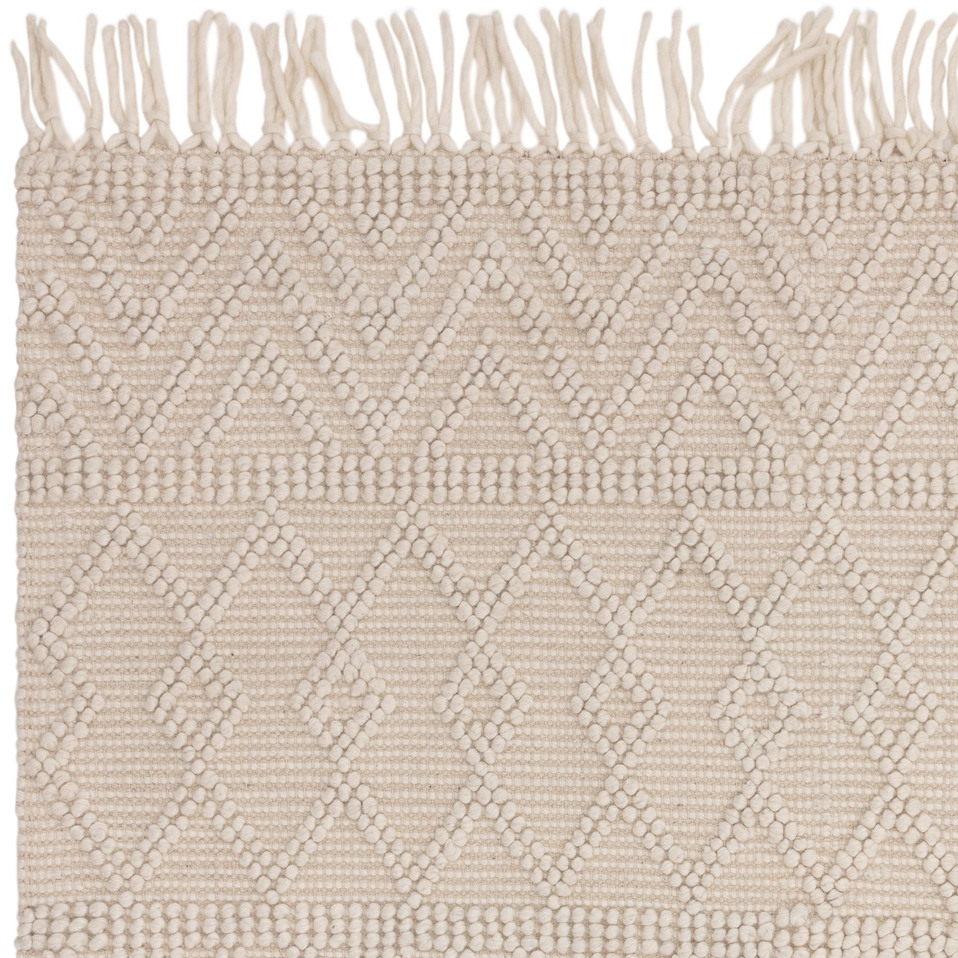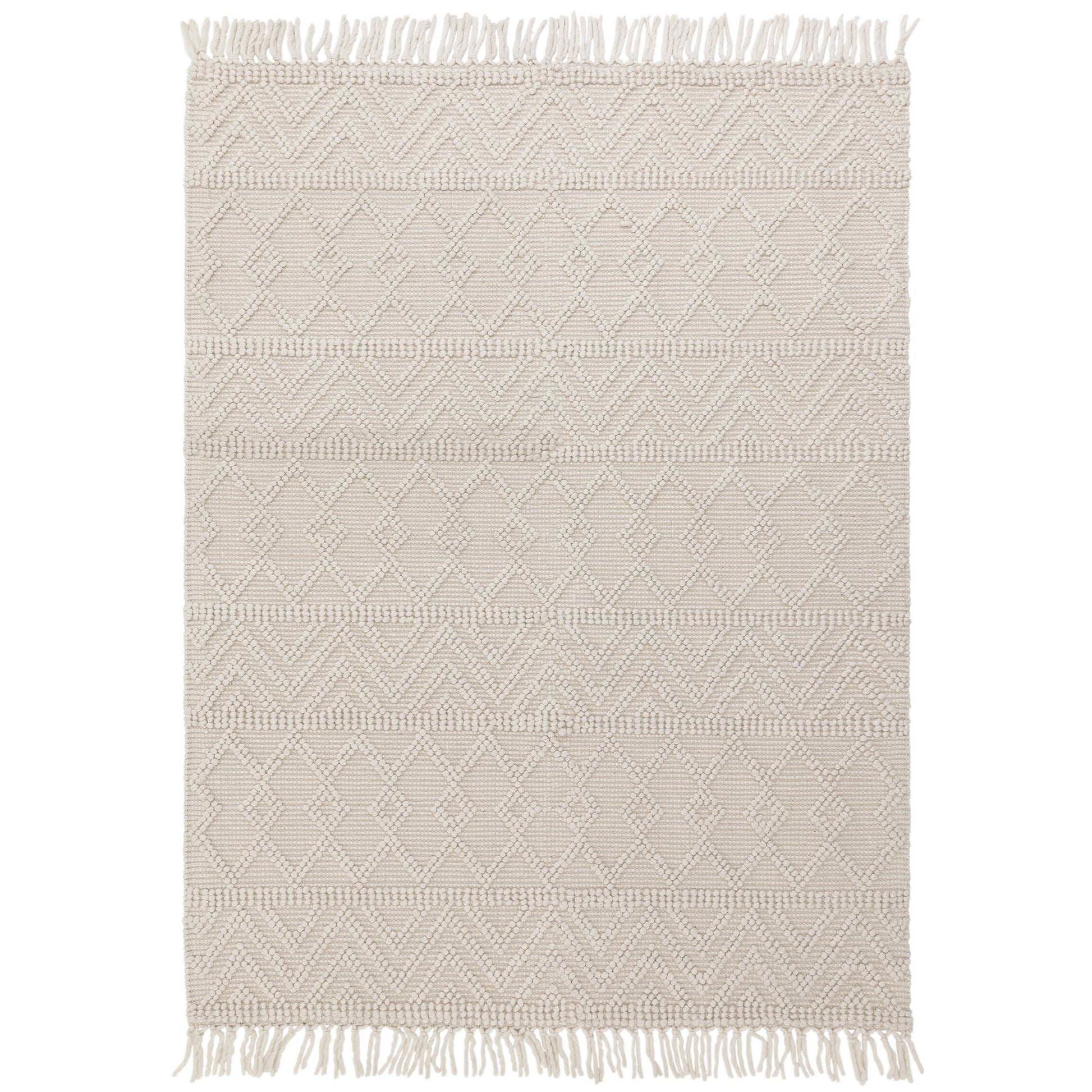Asra Boho Tribal Fringed Wool Flatweave Rug in Ivory White