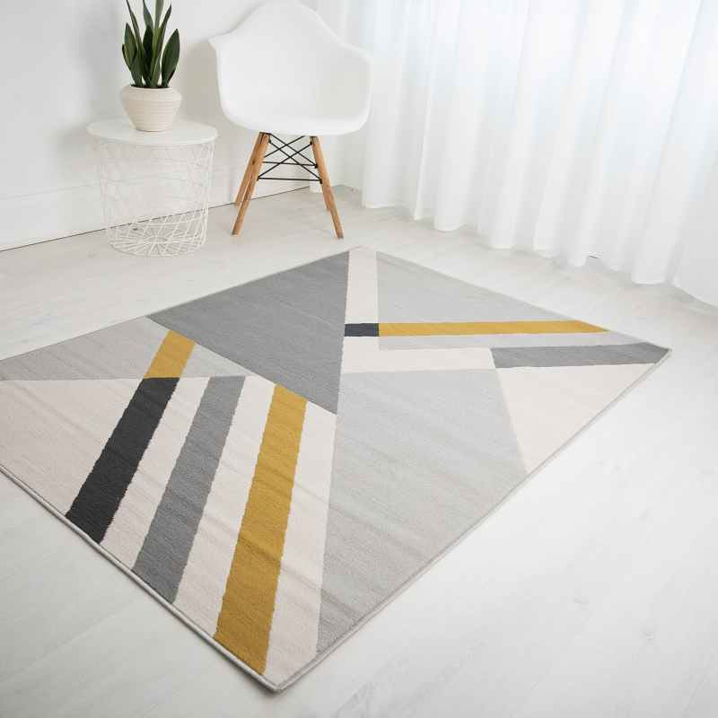 The Balletto 186B rug features an eye catching modern geometric design with textured detailing, coming in grey and ochre yellow colour tones for maximum style! The edges are whipped for a professional looking finish. This rug provides an affordable, soft touch pile which is durable, long lasting and suitable for moderate traffic areas. Available in a range of sizes from small to extra large.
