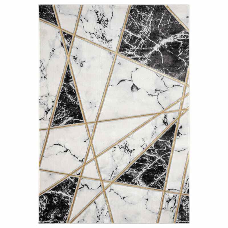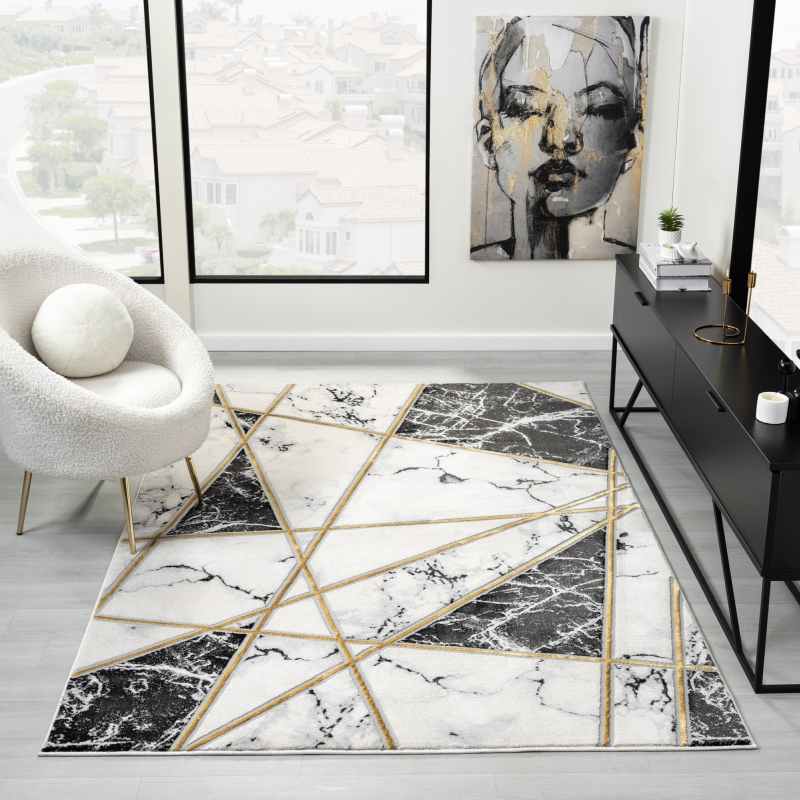 Bianco 185MA Marble Geometric Rug in Black Cream