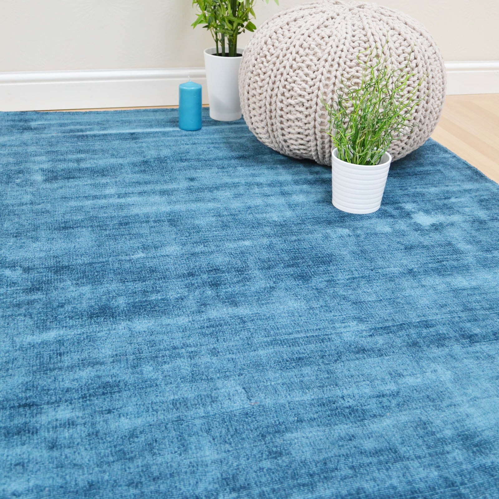 Experience luxury with the best-selling Blade rug. Featuring a plain, distressed pile, finished with a tip-sheared vintage effect. This stunning rug will look great in both modern or classical room settings, perfect for bedroom and living room areas. Blade has been handmade in India with a heavyweight, 100% Viscose pile. Available in a large range of colour palettes, shown here in a teal blue colourway. Coming in four sizes from small to extra large, with custom sizes available on request. Also available in a matching runner click here