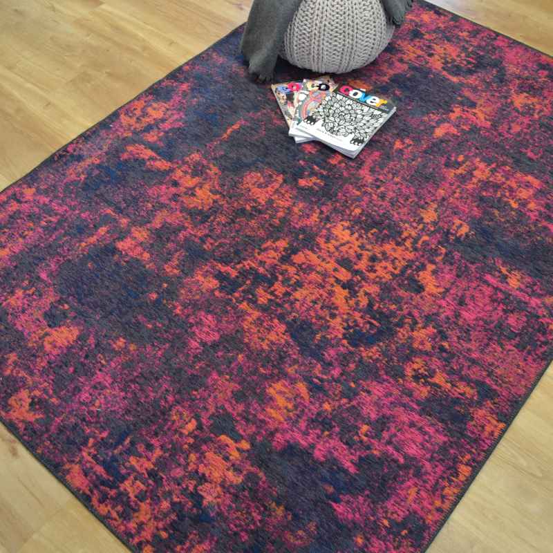 Bruges Abstract Rugs 97003 8005 in Pink Orange Cotton Chenille