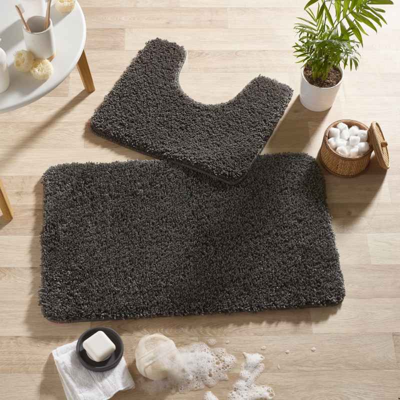 Buddy Bath Mat And Toilet Washable Set in Charcoal Grey