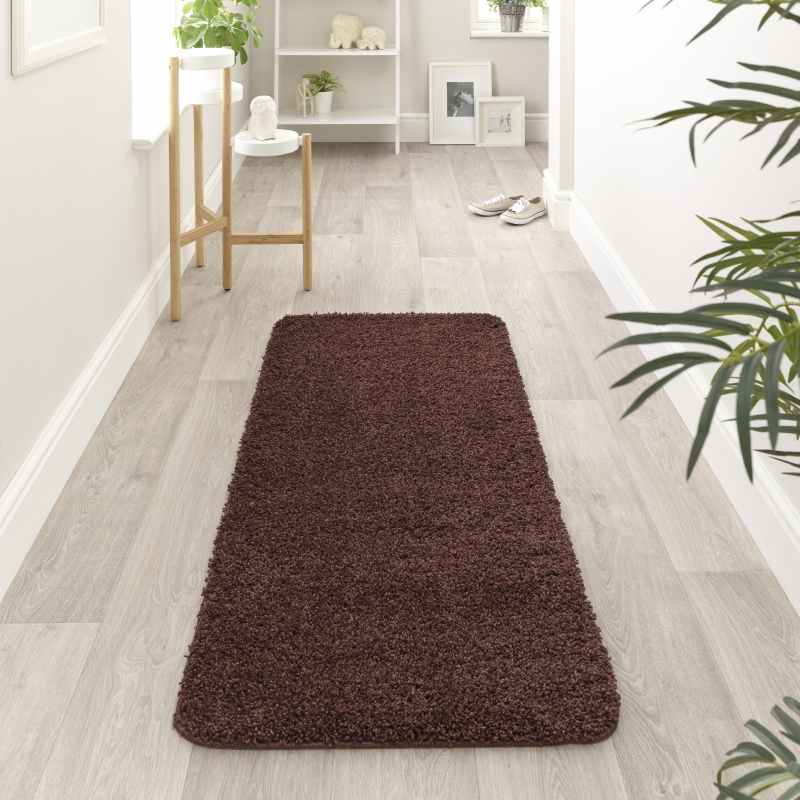 Buddy Washable Hallway Runner Rugs in Chocolate