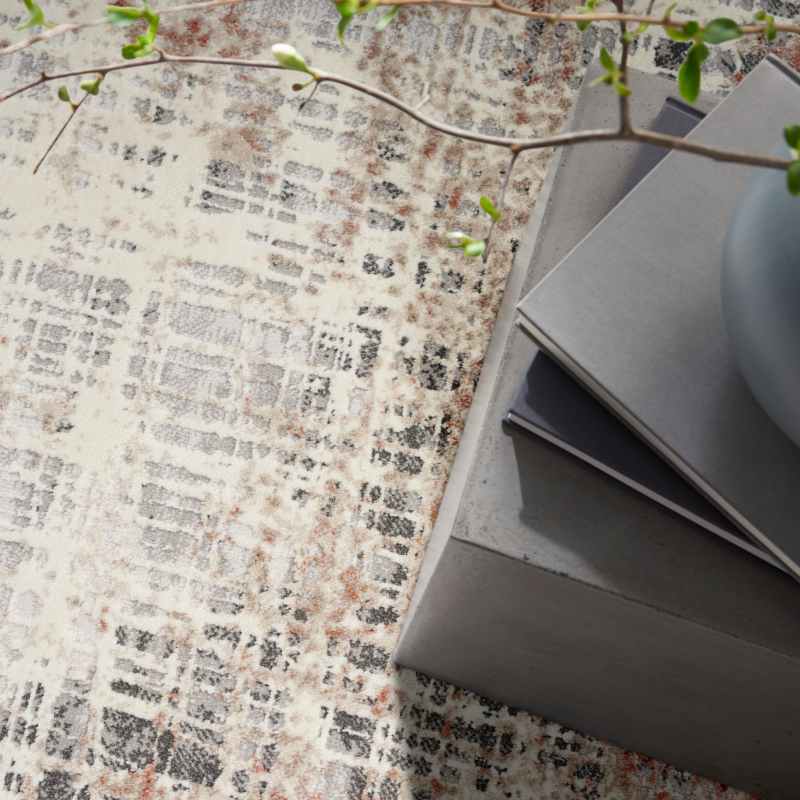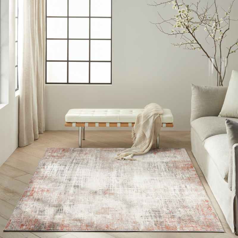 Casual elegance. The wispy clouds of colour and cross-hatched linear pattern of this abstract rug from the Calvin Klein Infinity collection adds depth to any space. This multicolored, rust red, grey and blue rug is machine-made for lasting style in softly textured, easy-clean fibers. Presenting a fresh, clean, and understated style that is authentically Calvin Klein. This rug has a pile height of 6mm.