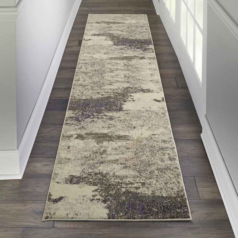 Celestial Abstract Hallway Runner Rug CES02 in Ivory Grey by Nourison