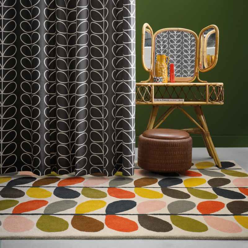 Orla Kiely's popular classic multi stem design is a colourful graphic that will lift modern surroundings. It takes Kiely's signature design of strong and subdued colour mixed with rhythmic pattern to create a classic rug, made from soft pure new wool that feels luxurious underfoot. A bold statement in any living area, the ingenious use of colour allows this rug to fit around most living room landscapes. For matching Runner click here