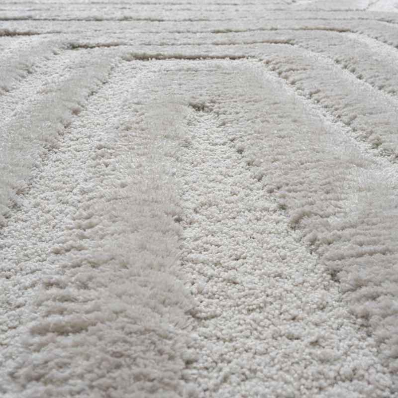 Cleo 13016 6191 Carved Shaggy Textured Rugs in Cream White