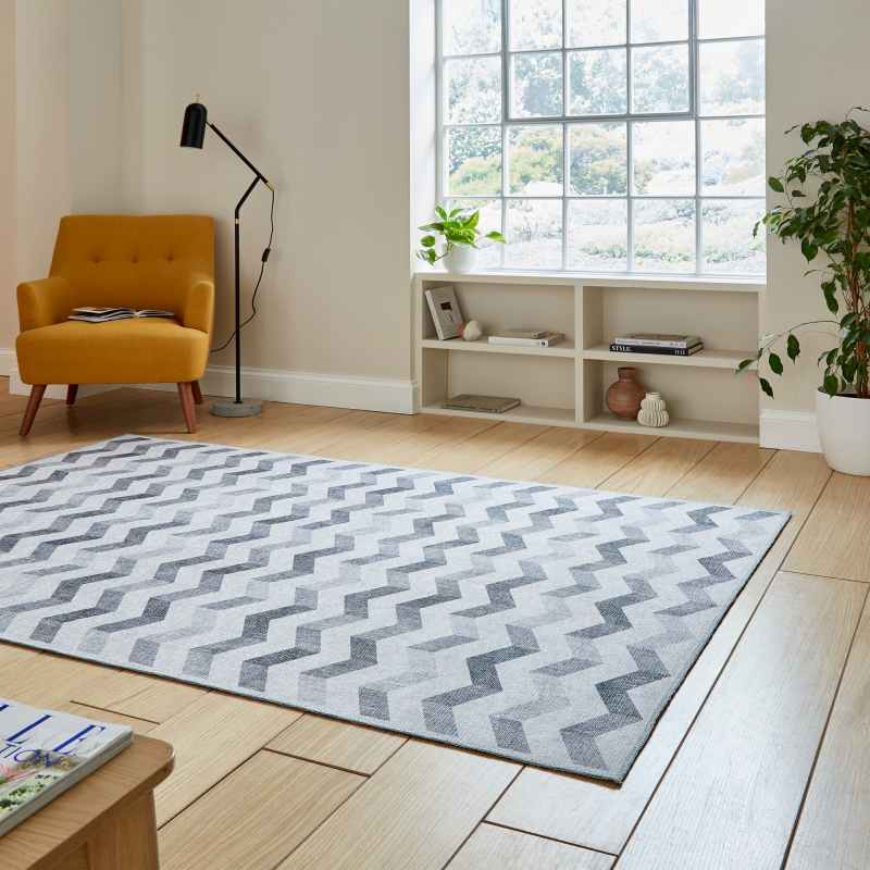 Coral H1059 Modern Washable Chevron Rugs in Grey