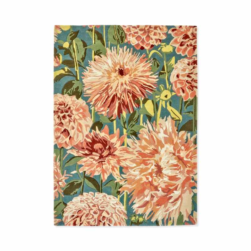 An elegant showcase of delicate dahlias in glorious full bloom. The Dahlia 142408 rug by Harlequin features a exquisitely detailed floral design which is a beautiful tribute to warm summer days in the garden. Shown here with pops of coral orange and green set against a blue ground. Beautifully crafted on pure new wool, with a pile height of 12mm for a luxurious underfoot feel. This gorgeous design is perfect for bedroom, living room and hallway areas, wherever you want to make a statement. Available in a range of sizes from small to extra large, with custom sizes also available. To complete the look team with the matching wallpaper click here