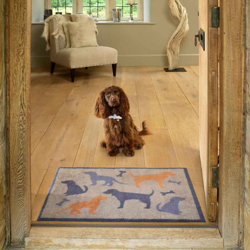 The Dog & Bone doormat will create a lovely welcome to your home. Perfect for your hallway, patio or kitchen areas, this mat features an all-over dog and bone design in a blue and orange colourway. Made with super absorbent recycled cotton fibres instantly trapping dirt, dust and moisture. This indoor doormat is a sure hit with the family and muddy feet! This doormat is machine washable, tumble dry safe on a low heat setting, and highly durable, guaranteed to last five years. Machine wash at 40. Wash before first use to maximise performance. Do not add fabric conditioner as this reduces absorbency. PVC free.