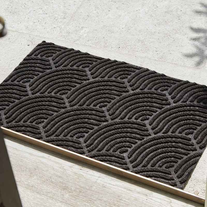 Our Dune Sculpted scraper mats are simple and stylish with a non-slip backing. Available in a Dark Brown colour to showcase the contemporary wave pattern, the contours allow rain to drain easily away. Dune mats can be kept clean with a quick shake, a hose and brush. Surface: Material made from 50% polyester (100% Recycled) and 50% polypropylene. Back: 100% Nitrile Rubber with recycled content.