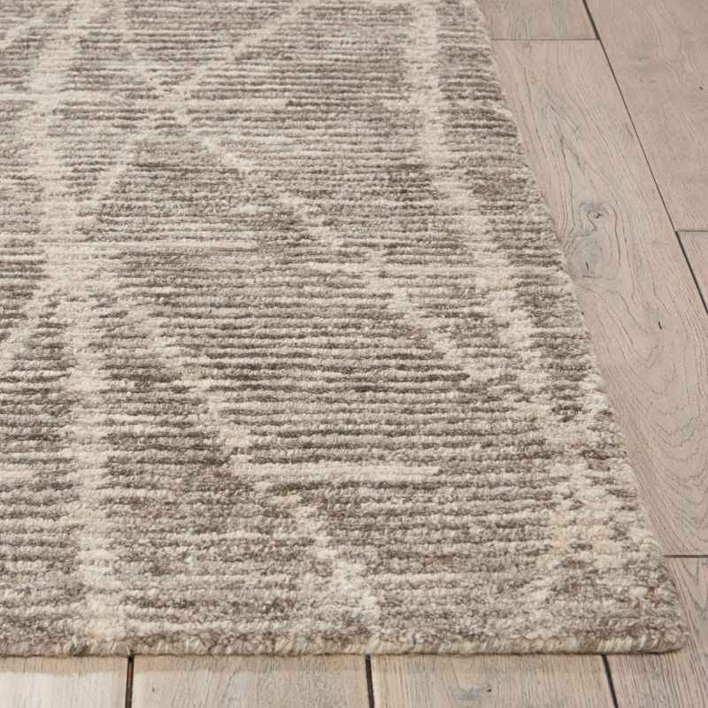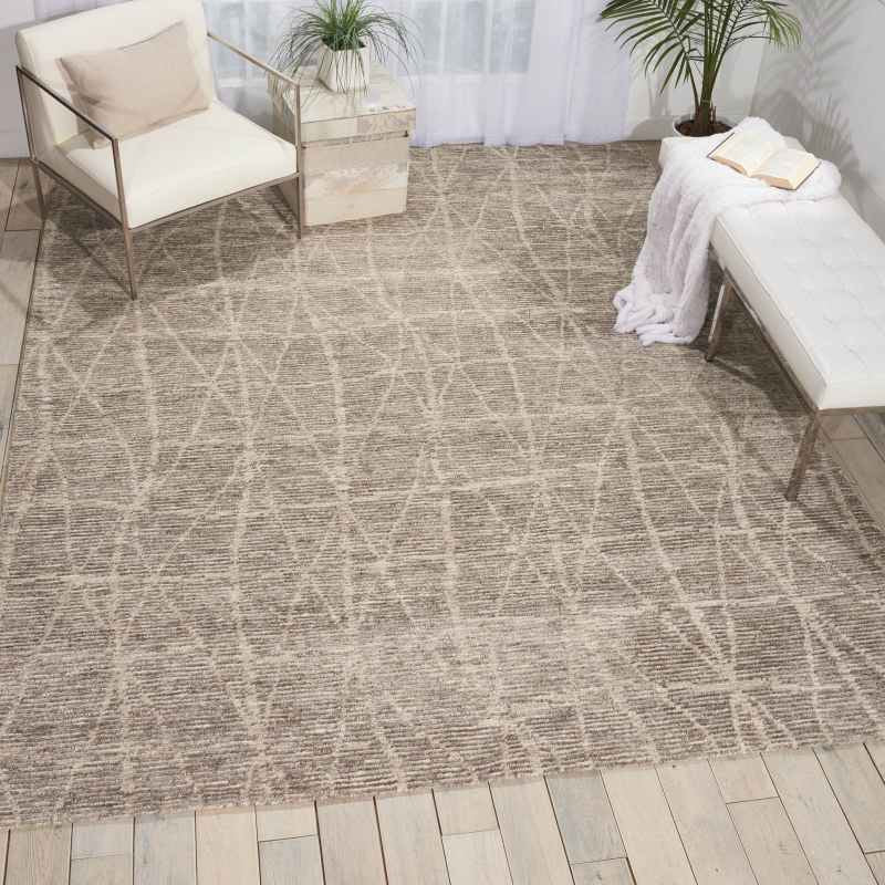 Ellora rugs ELL02 will dress any room in your home with superb contemporary style and lift any space to a new level of sophistication. The abstract design with intersecting lines forming an elongated diamond pattern is displayed with a rich sand beige colour palette and provides luxurious texture and luminous beauty. Ellora rugs are hand-knotted in a high-performance blend of wool, bamboo silk and cotton yarn and these alluring area rugs have a soft, thick texture you will find irresistible the ideal combination of quality, comfort, and elegant modern design. Pile height of 11mm