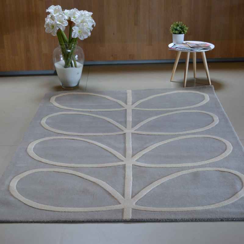 Giant Linear Stem Modern Wool Rugs 59404 in Grey by Orla Kiely