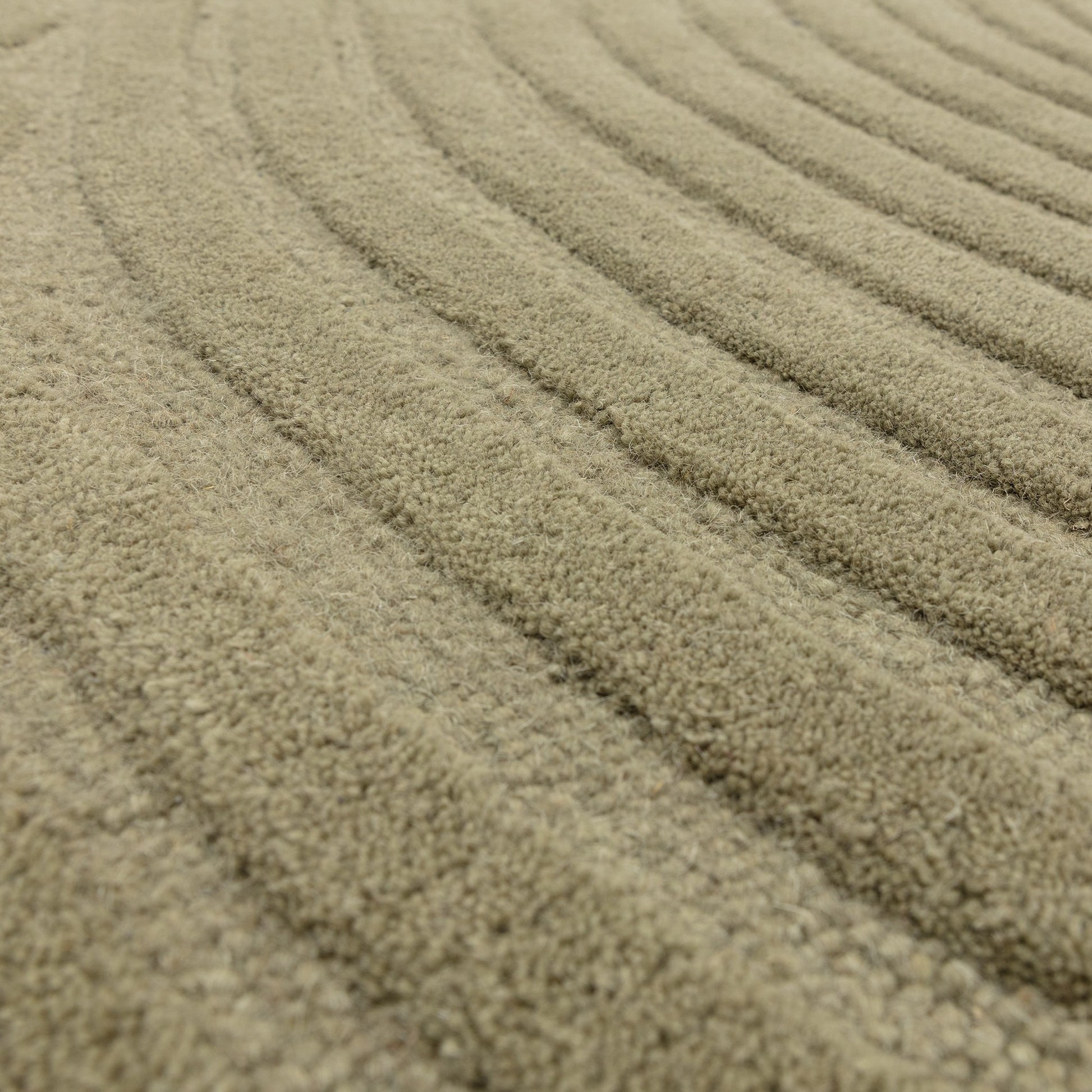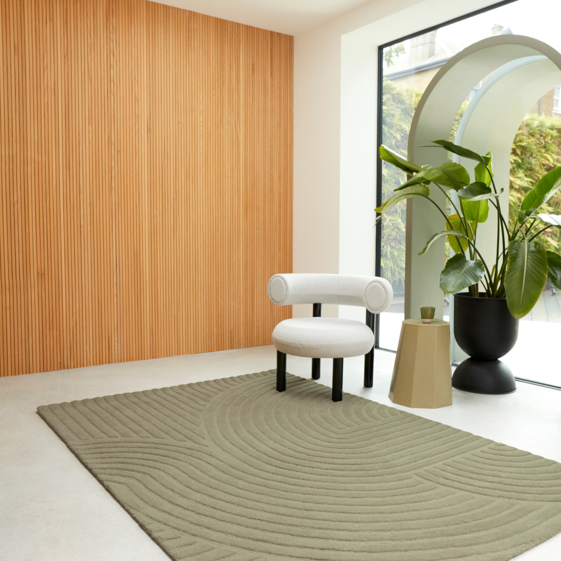 A modern classic, the sweeping lines and curves of the Hague rug is complemented by a textural cut and loop finish. Woven in India from 100% wool which benefits from being very resilient, durable and has a natural ability to resist staining and soiling, perfect for high traffic areas of the home. The geometric design features across a sage green colourway, which will perform in your living space for years to come. This timeless rug will make a statement wherever you place it, perfect for the hallway, living room, or bedroom areas. Available in sizes small, medium and large. Pile height 10-14mm.