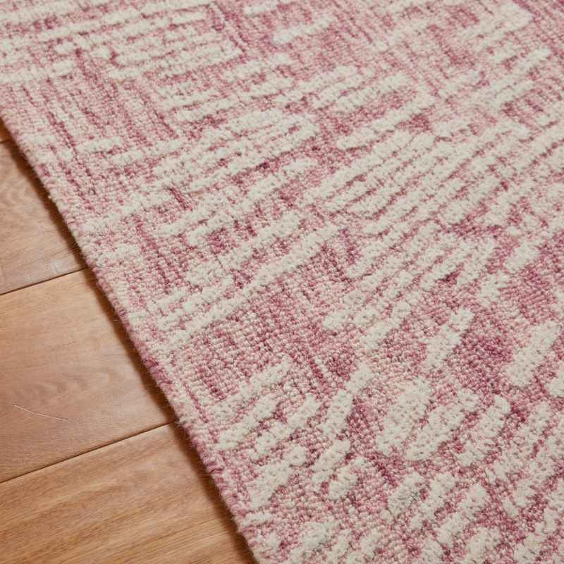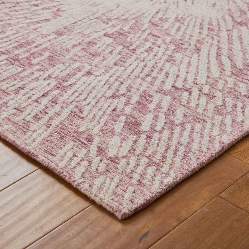 The Hampton design is displayed here in shades of pink and ivory. Gorgeously hand tufted from 100% soft wool that feels luxurious underfoot. Add texture to wooden floors or pattern to neutral carpets with this rug, featuring a contemporary abstract design. The Hampton design is great for high traffic areas and will make a bold statement in any home, creating a perfect new addition to add to your living room, bedroom and office areas.