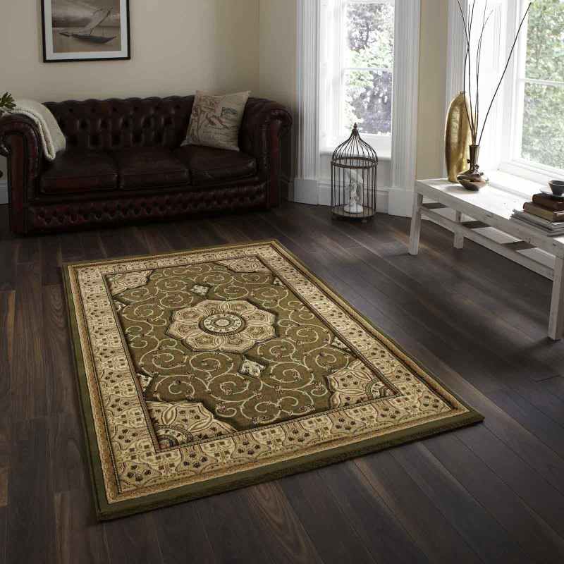 Heritage 4400 Traditional Rugs in Green are power loomed with a Wilton construction and a superb quality, heavy heatset polypropylene pile consisting of one million points per square metre. Heritage rugs have a soft feel and are colourfast, water repellent and stain resistant. An elegant choice for any home or office. Add a classic touch to any area of your home as this rug is available in a range of colours and sizes from small to extra large.