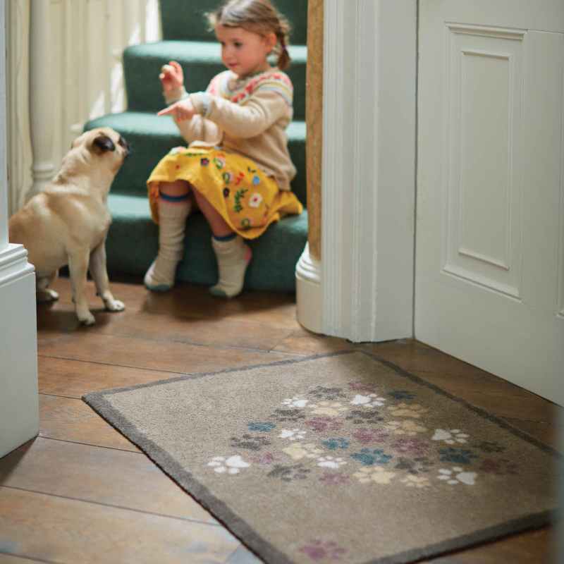 The Pet Hug Rug collection is perfect for stopping muddy paw prints in their tracks. The inks used to print on these mats are from vegetable based dyes which are kinder to our environment and will keep their colour wash after wash. Hug Rug Barrier mats are manufactured in the UK using 100 Recycled content and are designed to trap upto 95% of dust, dirt and mud and are washable at 30 degrees celcius. The pile is recycled cotton mixed with a new advanced microfibre that can absorb over 4 times its own weight in water or liquid. The Eco-Genics backing is non slip and is made from recycled car tyre powder. Hug Rugs can be used around the home, in the car and for porches.
