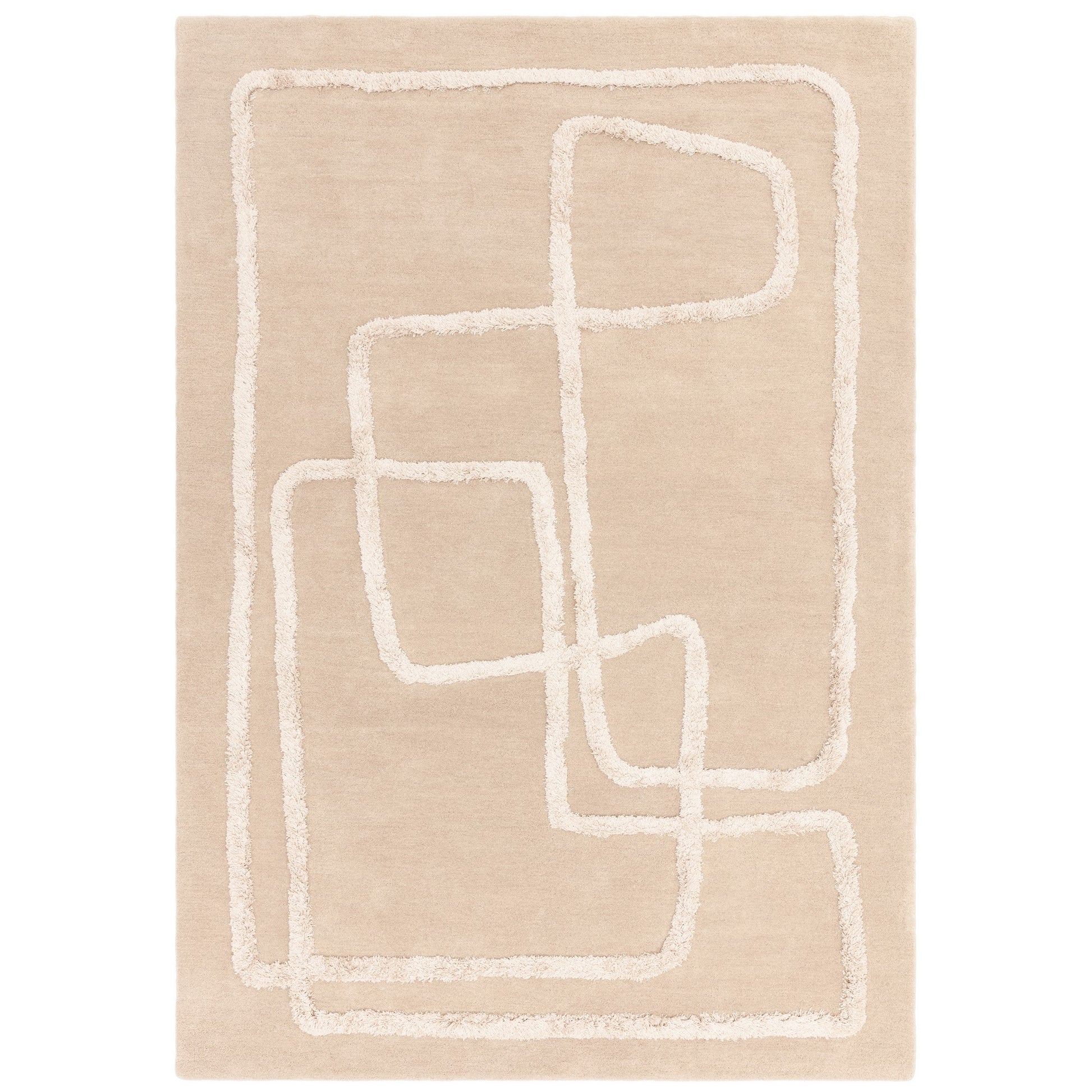 Infinity features a network of interconnected lines with a textured finish, perfect for living room and bedroom areas, wherever you want to make a statement. The abstract design and contrasting colours make this rug great for a contemporary room setting, displayed in a neutral sand colourway. This striking rug has been hand tufted in India with a blend of wool and viscose for a durable, soft touch and comforting under foot feel, hand finished for added detailing. Available in a range of sizes from small to large. Composition: 80% Wool 20% Viscos. Pile height: 11mm. High-low pile.
