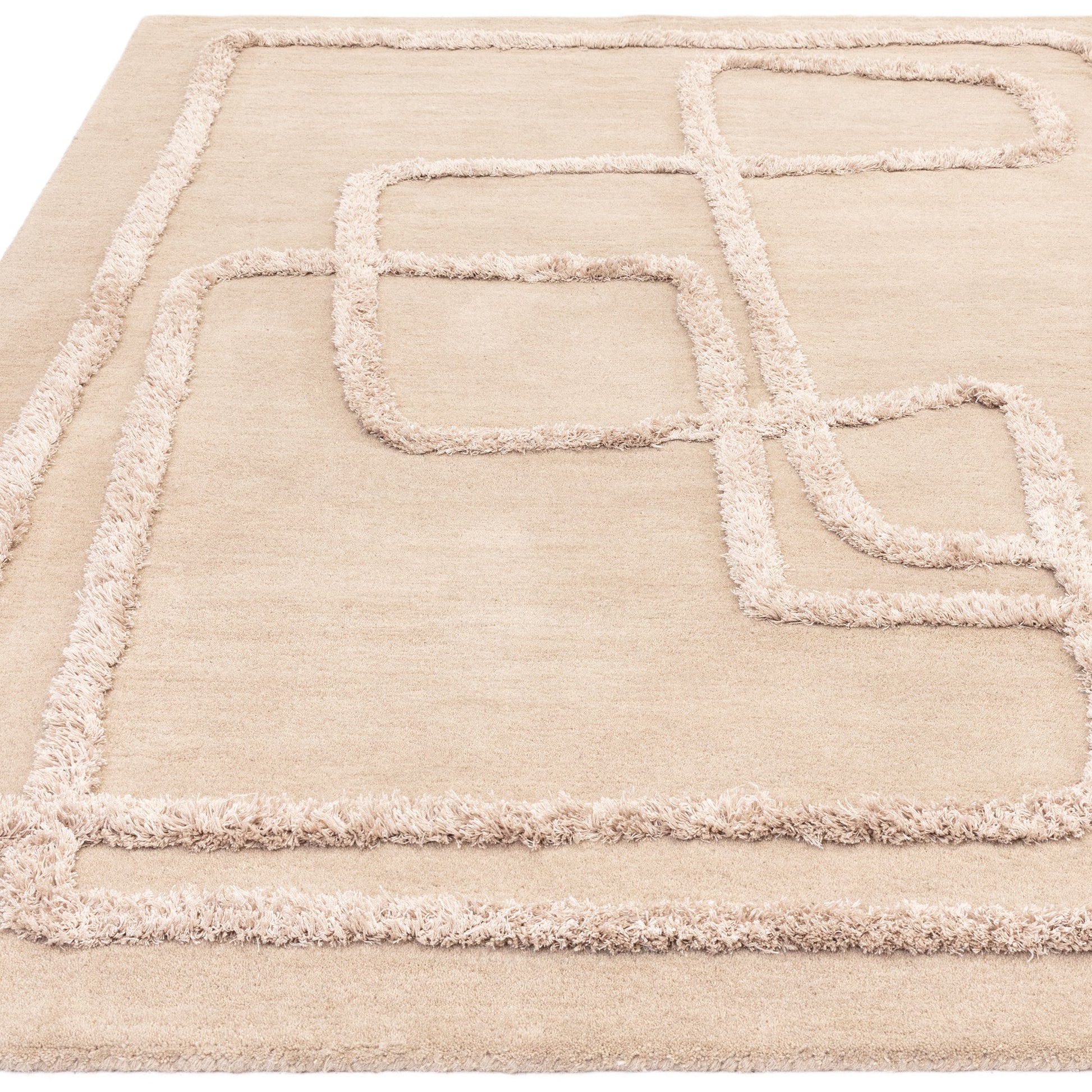Infinity Modern Wool Abstract Textured Rug in Sand Natural