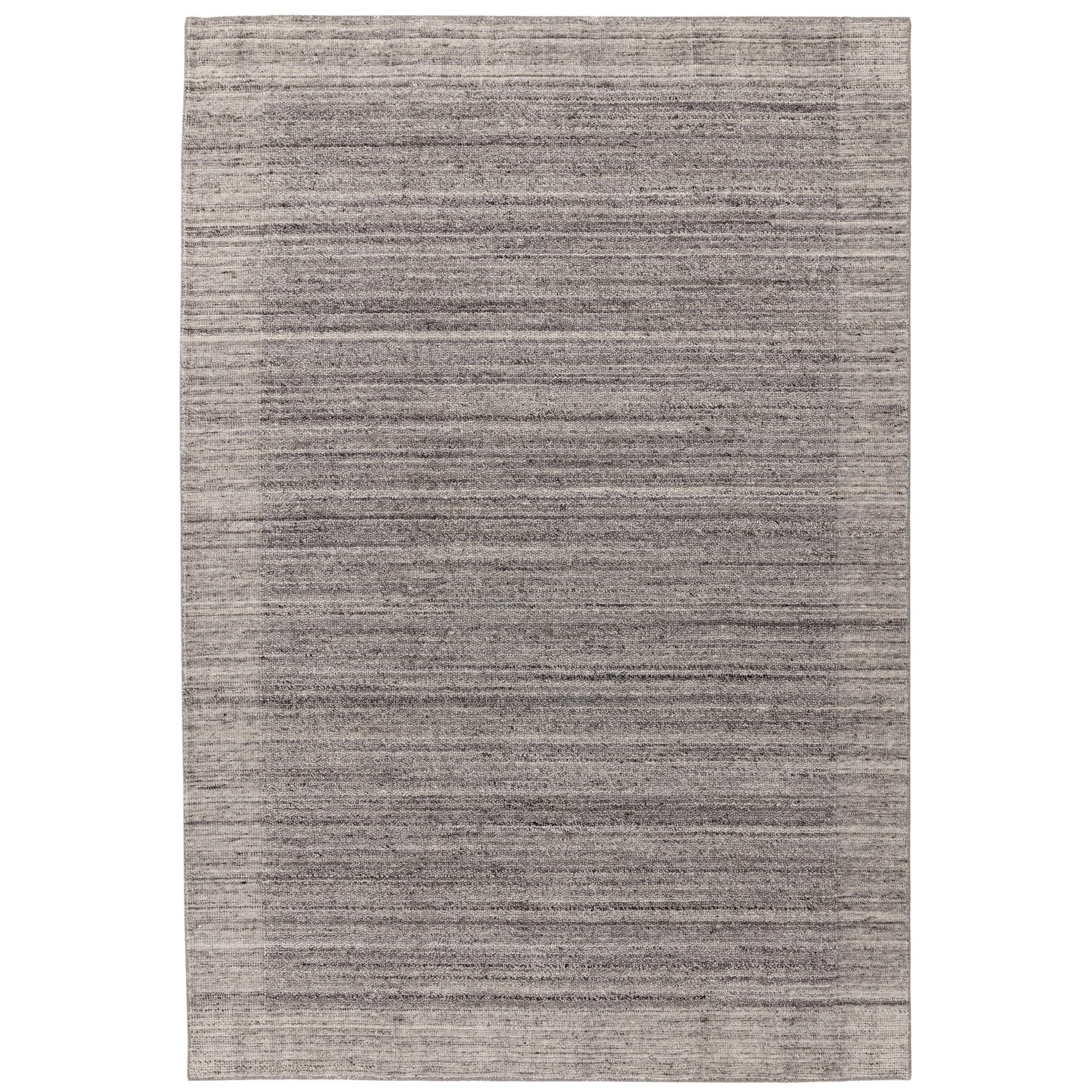 Larson Plain Boho Wool Border Rugs in Charcoal Grey