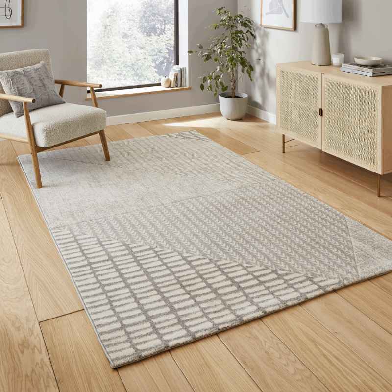The Catherine Lansfield Larsson rug is designed to bring a bold, contemporary edge to your bedroom or living room areas. Featuring a modern abstract pattern in a high-density weave, finished in a grey colourway. This rug is crafted from 100% polypropylene for durability and stain resistance. Its machine-woven construction is enhanced with hand-carved detailing, adding depth and texture to the design. Perfect for those who enjoy modern, geometric styling, the Larsson rug effortlessly combines functionality with artistic appeal, making it a standout addition to any room. Pile height 1cm. Available in sizes small to large.