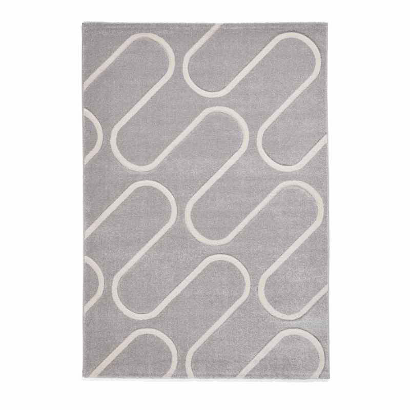 Linear Curve Modern Geometric Rugs by Catherine Lansfield in Grey