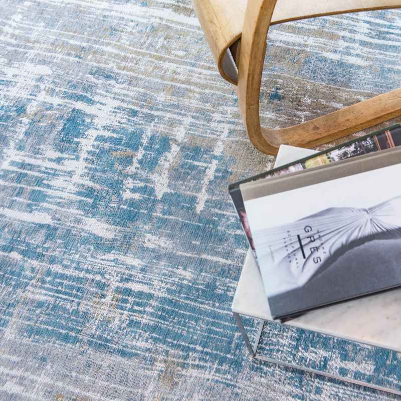 Atlantic Streaks rugs 8718 in Long Island Blue offers an abstract design that is reminiscent of ripples and streaks in the sandy shores of New Jersey and Long Island that have been whipped by winter gales. Multiple layers of texture, distressed areas and a wonderful blue, beige and grey and beige colour palette will make an eye-catching centrepiece in any room in your home. This eco-friendly rug is power loomed in Belgium and fully recyclable. The 100% Polyester pile and Anti Slip backing is both durable and resilient making it a perfect choice for under tables and chairs. This dedication to sustainability gives you an ethical choice without compromising quality or style, so you can enjoy the beauty of your rug knowing you are choosing a better future. The Take Care initiative makes it easy to return your rug for recycling. Available in a wide range of sizes. Also available in matching circle sizes click here