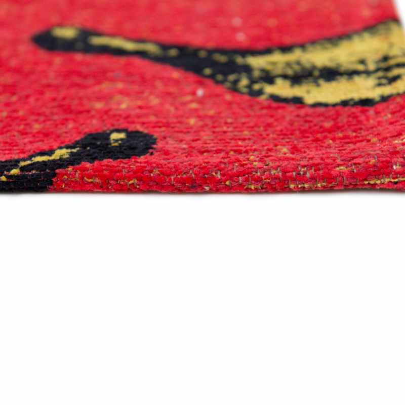 Introducing the Banana rug 9392 by Louis De Poortere from the Pop collection. This rug is quirky, adding a dose of originality to your home interior. Featuring a unique and iconic Banana motif, presented in a yellow colourway on a red ground. This rug is a real statement of style and an invitation to get off the beaten track, sure to catch the eye and spark lively conversations. This eco-friendly rug is power loomed in Belgium and fully recyclable. The 100% Polyester pile and Anti Slip backing is both durable and resilient making it a perfect choice for under tables and chairs. Choose from a large selection of rectangular sizes. Also available in matching circular sizes click here