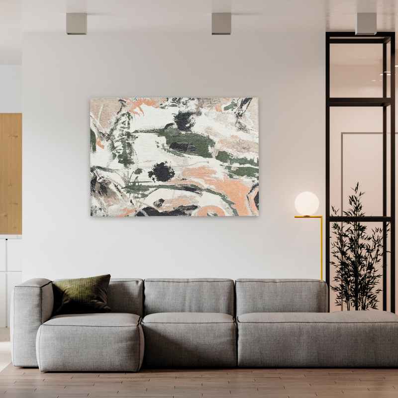 Introducing the Fresque rug 9393 by Louis De Poortere, from the Gallery collection. Let yourself be seduced by this rug, featuring bright but natural colours and visible brushstrokes, this rug has an artistic and expressive look that leaves plenty of room for imagination. The design concept is inspired by a childrens painting workshop, where spontaneity and free expression have pride of place. The rug appears to be part of a fresco, capturing the energy and movement of a creative gesture. Presented in green, peach, charcoal and cream tones. The colours used are vibrant and joyful, bringing a touch of gaiety and dynamism to your space. This eco-friendly rug is power loomed in Belgium and fully recyclable. The 100% Polyester pile and Anti Slip backing is both durable and resilient making it a perfect choice for under tables and chairs. Choose from a large selection of rectangular sizes. Also available in matching circular sizes click here