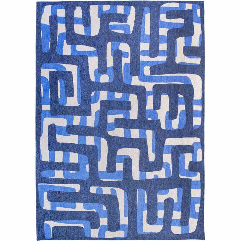 Introducing the brand new Kuba rug by Louis De Poortere. Inspired from Zairean Kuba art, famous for its abstract motifs and rich creativity. Kuba men and women, renowned for their exceptional weaving and embroidery skills, developed increasingly abstract designs as the kingdom grew in prosperity and power. The design concept is inspired by African fabrics, but revisits them with a modern approach and a sense of added perspective. The traditional ethnic pattern is metamorphosed into two layers, creating a captivating visual depth that further enhances the effect of perspective, presented in a ultramarine blue colourway. This eco-friendly rug is power loomed in Belgium and fully recyclable. The 100% Polyester pile and Anti Slip backing is both durable and resilient making it a perfect choice for under tables and chairs. Choose from a large selection of rectangular sizes. Also available in matching circle sizes click here