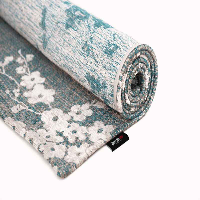 Introducing the Louis De Poortere Sakura rug. This rug celebrates the timeless beauty of Japanese cherry trees. Inspired by these emblematic symbols, this rug embodies both elegance and fashion. The design focuses on the representation of cherry blossom trees, creating a delicate and poetic atmosphere, presented in a lake blue colourway. The floral motifs evoke the spring season and capture the ephemeral beauty of sakura petals in full bloom. This eco-friendly rug is power loomed in Belgium and fully recyclable. The 100% Polyester pile and Anti Slip backing is both durable and resilient making it a perfect choice for under tables and chairs. Choose from a large selection of rectangular sizes with matching circle sizes also available. For the matching round rugs click here