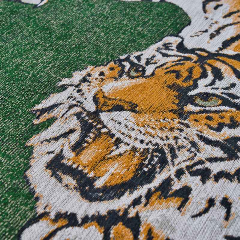 Introducing the Tiger rug by Louis De Poortere from the Pop collection. This rug is quirky, adding a dose of originality to your home interior. Featuring a unique and iconic tiger motif, presented in a orange and white colourway on a green ground. This rug is a real statement of style and an invitation to get off the beaten track, sure to catch the eye and spark lively conversations. This eco-friendly rug is power loomed in Belgium and fully recyclable. The 100% Polyester pile and Anti Slip backing is both durable and resilient making it a perfect choice for under tables and chairs. Choose from a large selection of rectangular sizes. Also available in matching circle sizes click here