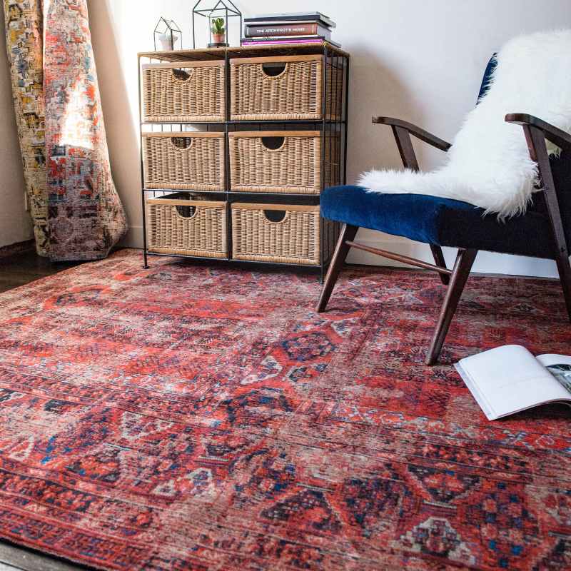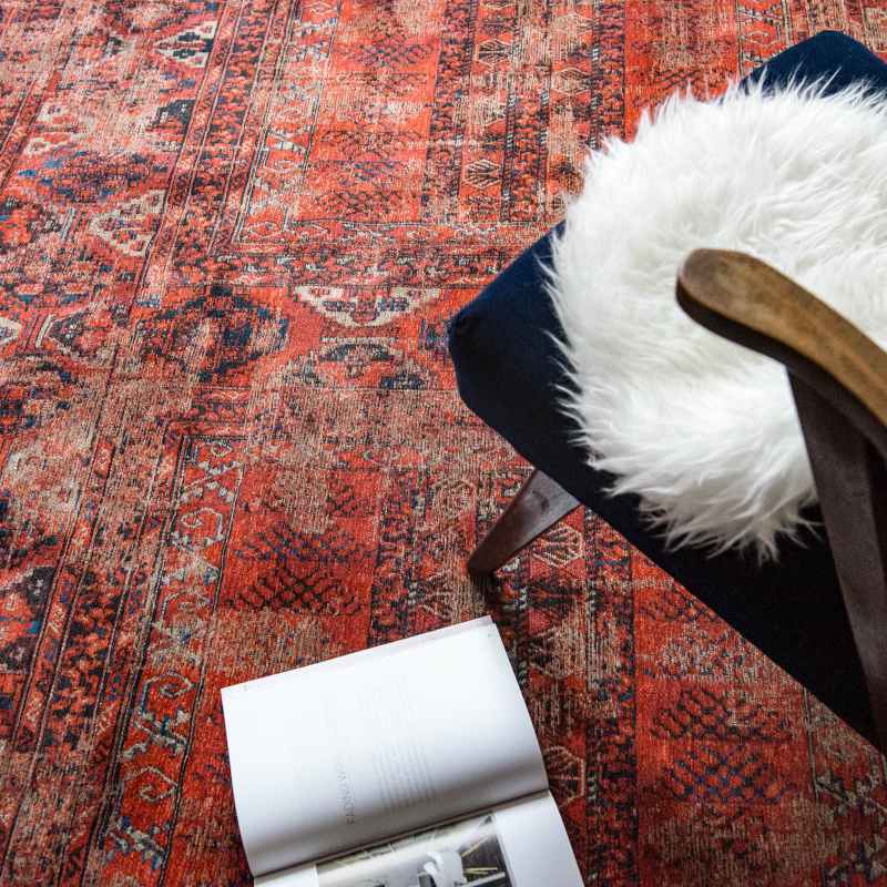 The Louis De Poortere Antique Hadschlu rug 8719 offers a beautiful classic design with a rich red colour palette that will bring elegance and style to your interior. Antique Hadschlu rugs are from the wonderful Antiquarian collection and display a distressed, antique look that is suited to both contemporary and traditional room styles. This flatweave rug is approx 8mm in thickness, and the edges are hemmed to create a neat finish. This eco-friendly rug is power loomed in Belgium and fully recyclable. The 100% Polyester pile and Anti Slip backing is both durable and resilient making it a perfect choice for under tables and chairs. This dedication to sustainability gives you an ethical choice without compromising quality or style, so you can enjoy the beauty of your rug knowing you are choosing a better future. The Take Care initiative makes it easy to return your rug for recycling. Available in a wide range of sizes.