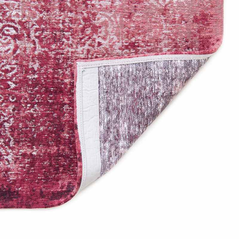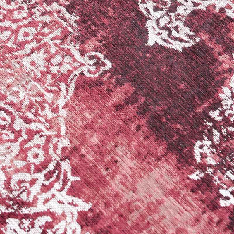 Louis De Poortere's Kirman rug 9378 is a harmonious blend of past and present, of classic deconstruction and contemporary artistic expression. Inspired by an old design, this rug adds a worn and nostalgic touch. The motif is stylised using a flamed yarn, which structures the design and gives it a textured, subtly evanescent appearance, like a memory that is slowly fading. This unique technique gives the rug a captivating, artistic aesthetic. Available in five colours, shown here in a margaux red colourway. The 100% Polyester pile and Anti Slip backing is both durable and resilient making it a perfect choice for under tables and chairs. Choose from a large selection of rectangular sizes.