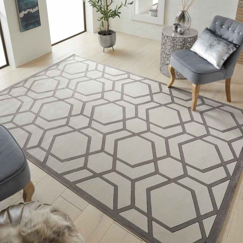 Lugano LUG04 Geometric Rugs by Concept Looms in Ivory Light Grey