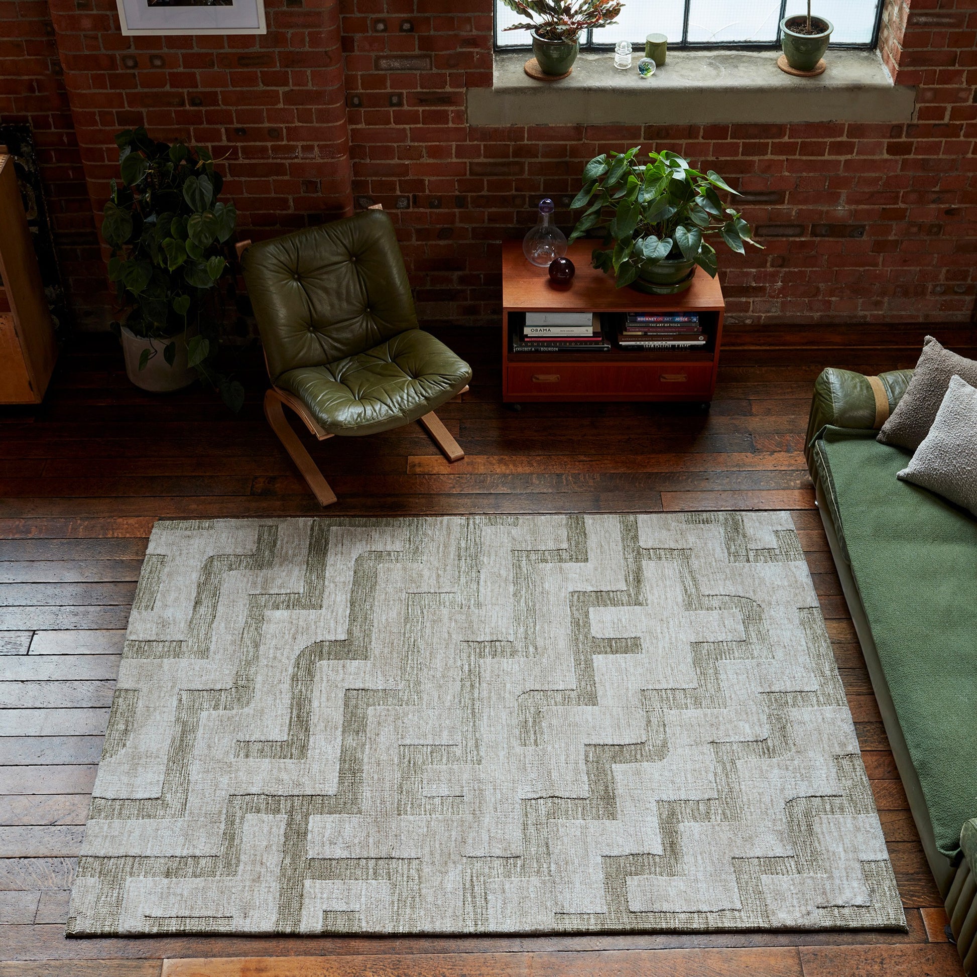 Mason Maze Modern Geometric Rugs in Sage Green Cream