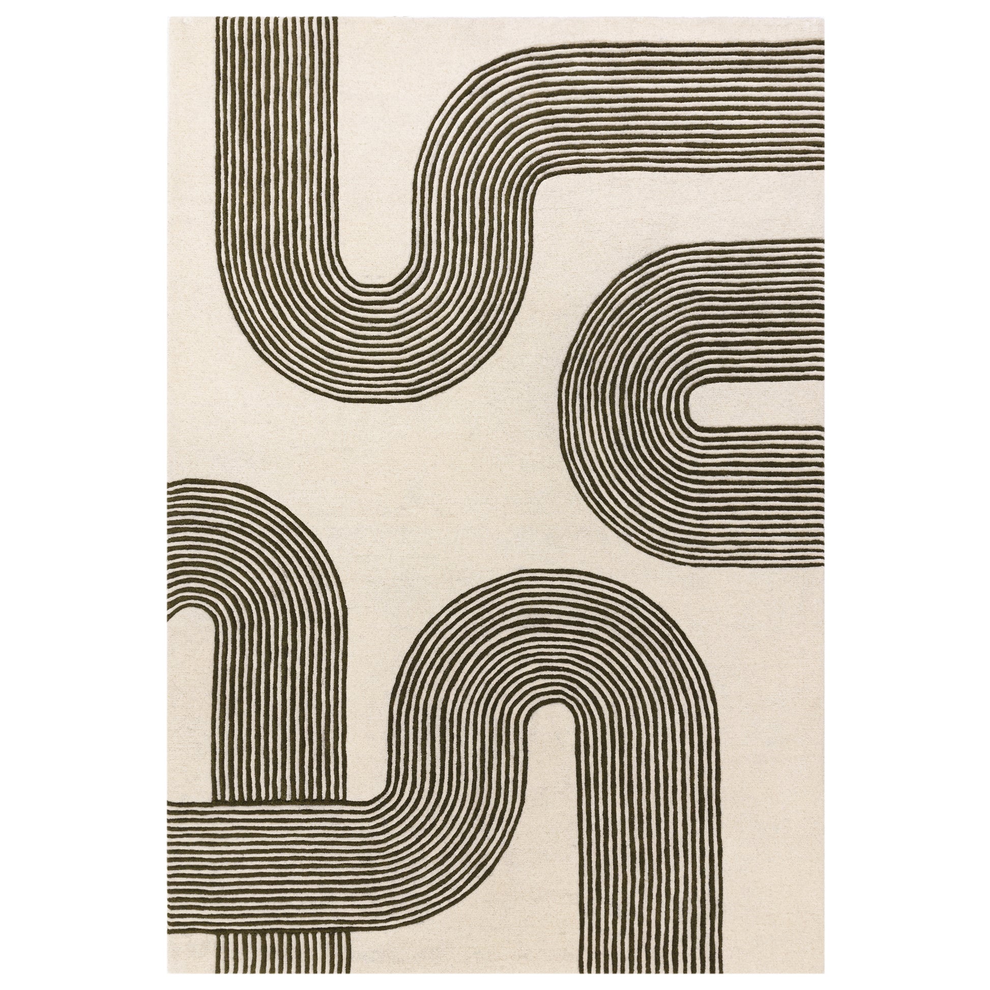Introducing the Matrix Arches MAX86 rug in forest green. This rug has been characterised by bold geometric designs, hand-finished using techniques that enhance both texture and detail. Hand tufted in India for maximum appeal, the modern abstract design makes it a perfect artistic addition to any room, perfect for living room and bedroom areas, wherever you want to make a statement. This rug is constructed with pure wool into a soft weighty pile, designed to provide luxurious comfort, and to meet the demands of the modern home. The natural fibres of the Matrix Arches rug makes for a hardwearing and durable rug. Available in a range of sizes from small to large. Pile height: 12-14mm.